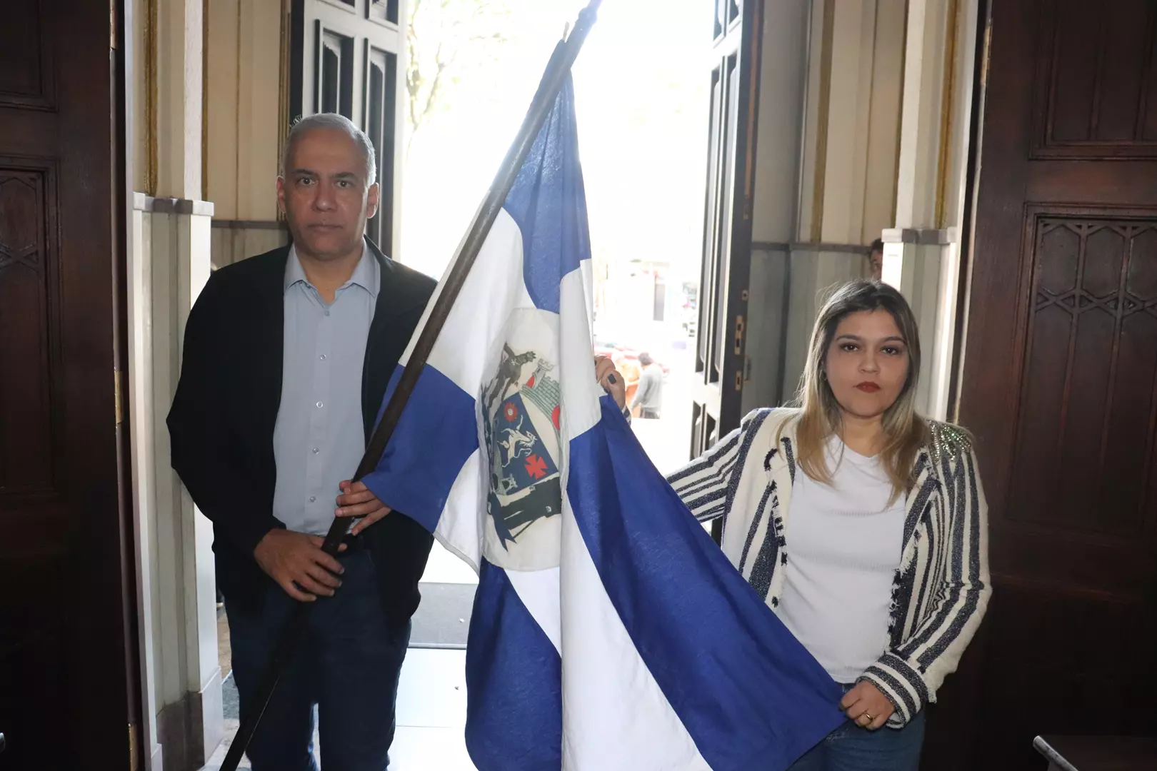 Ao final as autoridades fizeram a tradicional foto junto com Padre Ramos segurando a bandeira do bairro.